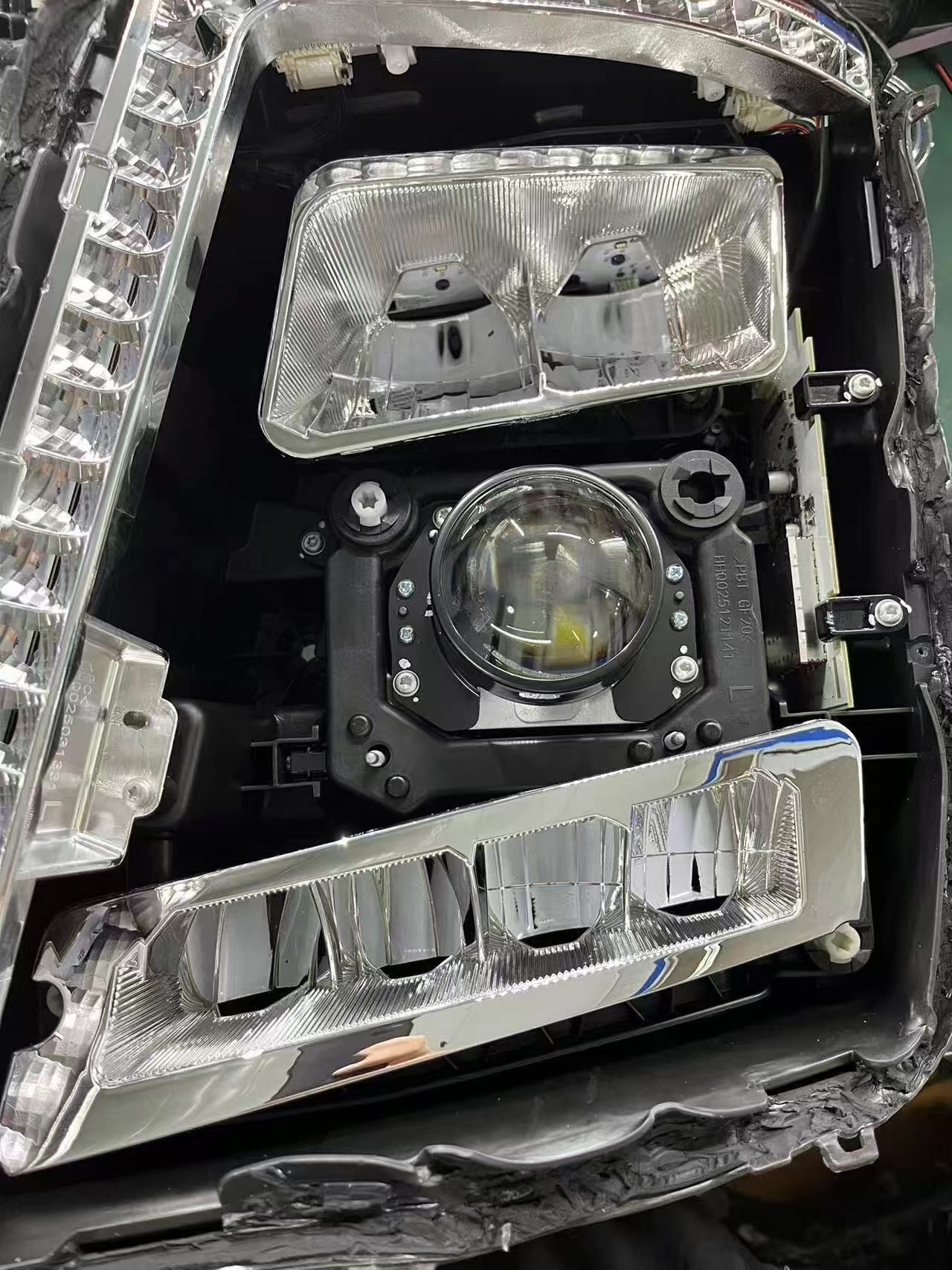 透镜需垫高然后打磨前面饰框