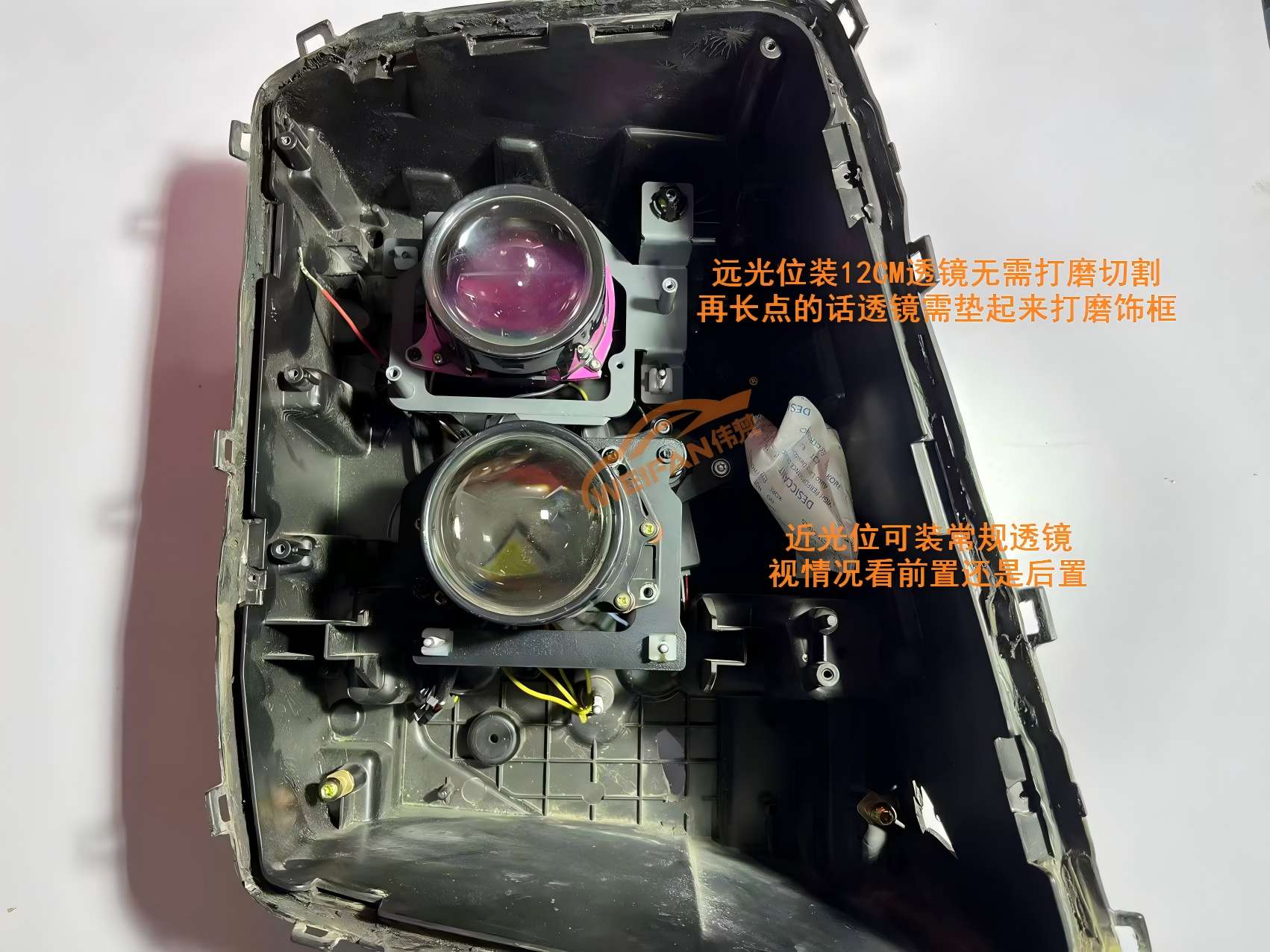 远光位装12CM左右透镜无需打磨切割再长些的话